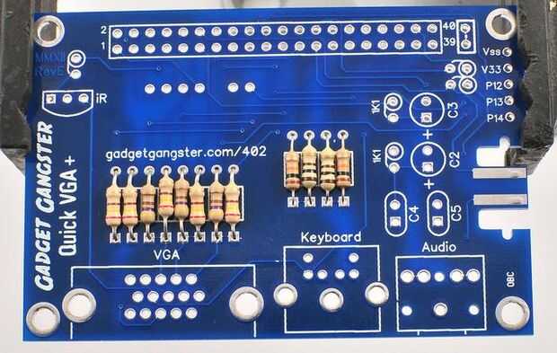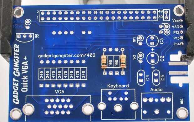 La Junta que se muestra en esta imagen es e revisión. Revisión G "RevG" de esta tabla tiene un adicional resistencias de ohm tres 120 que se han añadido a la derecha de la fila de resistencias detrás del conector VGA. Esta actualización mejora la cantidad de color de 48 a 64 colores. También se ha añadido un zócalo opcional de SRAM (23K 256). Si se detecta un chip SRAM que 32 K de memoria "extendida" adicional está disponible para BASIC utilizando comandos PEEK/POKE.