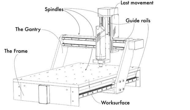 De dibujo por encima da una descripción de las partes mecánicas principales que se cubren en este Instructable. Por supuesto también cubrirá la parte eléctrica de la máquina. También se adjunta un PDF con las dimensiones principales.