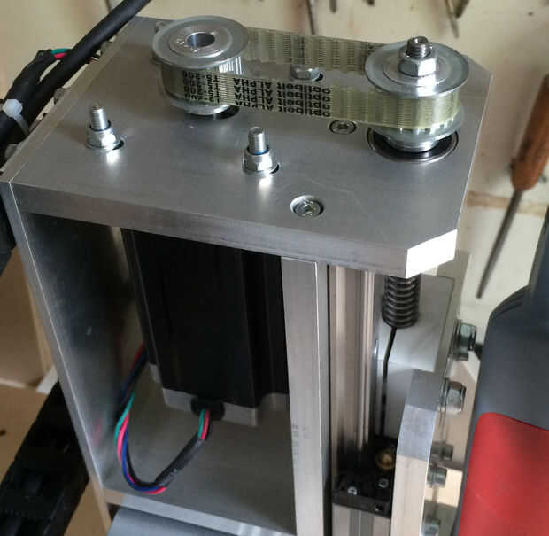 Las poleas son perforadas para el tamaño del eje dado vuelta (en mi caso 8 mm) y proporcionadas de un tornillo de M4 fijación perpendicular a la shafthole.