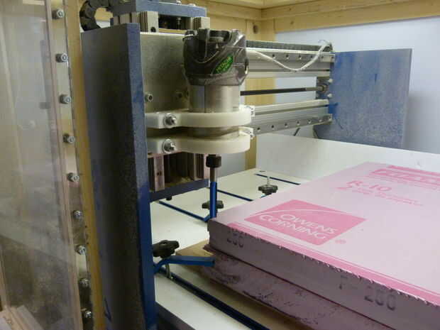 Primero viene la pasada de desbaste y luego un cambio de bit y la pasada de acabado. Una vez que el acabado paso es completado y tienes las dos mitades de una pieza concreta, verás lo que quiero decir cuando digo que hay límites para el proceso CNC. Las partes se estrecha pero debido a la orientación de la pieza y otros factores, no será perfectos. No se desespere. Esto es donde algunos 80 lija, pegamento y spackle entran en juego. Si la parte es en las extremidades (cabeza, manos o pies) está bien encolarlos y empezar a lijar/plaste. Si la parte que en cualquier otro lugar (torso, piernas, brazos, paquete de cohete), primero necesita crear un canal entre las dos mitades de la armadura de PVC residir.