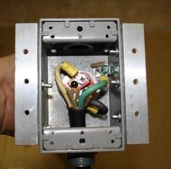 Desmontar la guarnición de agua firmemente de que el cable de alimentación se ejecutará a través. Deslice la tuerca y buje sobre el cable de alimentación en el orden que salieron de la guarnición de goma exterior y luego instale el cuerpo de conexión principal en la caja eléctrica.