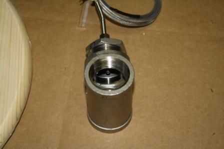 Y aquí está roscado en uno de los Tees. Turbulencias de agua mantendrá agua arremolinándose alrededor en el tee y debo obtener mediciones de temperatura muy precisa.