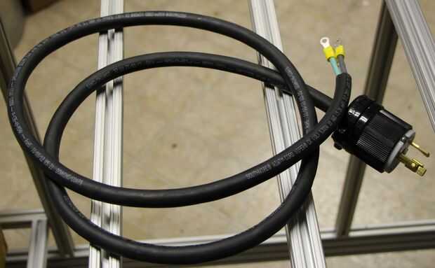 Cogí uno de los 6' 240V cables montamos para clientes y cableado los bordes del tubo.