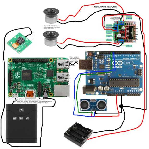Antes de que caliente el soldador, tenemos que ir sobre lo que debe estar conectado a lo que. Hice este gráfico simple (MS Paint nunca me deja abajo) que describe donde se encuentran dentro de este robot parte de cortina (por cierto, mis calles hermana poco FartBot debido a los ruidos divertidos los neumáticos hacen de ti. Madre me convenció para cambiar el nombre a SmartBot)