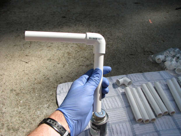 Instale un codo a un segmento, girar hacia arriba e instale otro segmento hacia izquierda.