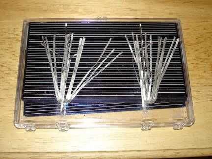 También compré un par de lotes de células que no fueron sumergidas en cera de otro vendedor de Ebay . Estas células vino embalado en una caja de plástico. Sacudió alrededor de la caja y levanté un poco astillado en los bordes y esquinas. Chips de menor de edad no importan demasiado. No reducen la salida de la célula lo suficiente para preocuparse. Estas son todas manchadas y fábrica segundos de todas formas. La razón principal de las células solares Haz rechazadas es para chips. ¿Qué es otro chip o dos? Todos juntos compré suficientes células para hacer 2 paneles. Sabía sería probablemente romper o arruinar lo contrario al menos unos pocos durante la construcción, así que compré extras.