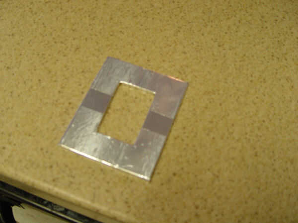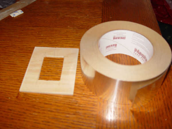 La hebilla del cinturón (a la izquierda en la foto) se corta de una pieza de la izquierda más 1/8" revestimiento de madera. Cartulina pesada también funcionaría. La hebilla se cubre con cinta de papel adhesivo con la marca Nashua. Esta cinta se utiliza para conectar los conductos metálicos y se encuentra en la sección HVAC, construcción de más centros como Home Depot. (Foto 5) Corte la cinta de papel, retire la tira protectora de la parte posterior y aplique la cinta a la forma de hebilla de ajuste firmemente todos los bordes. (Foto 6) La hebilla se atornilla a la parte delantera de la correa. (Foto 7)
