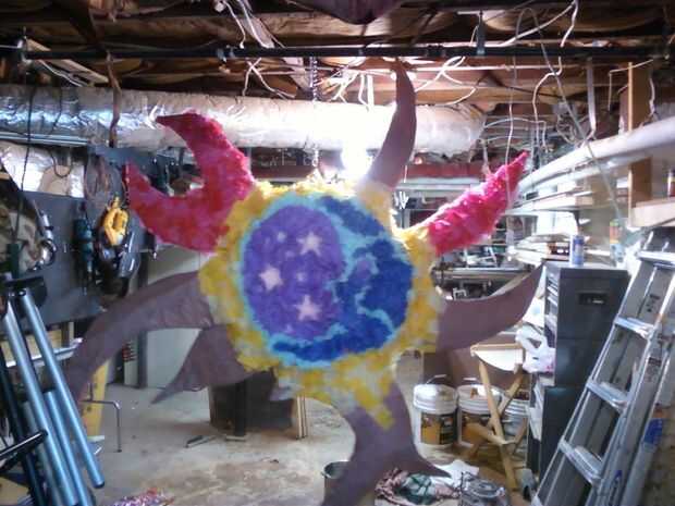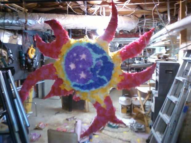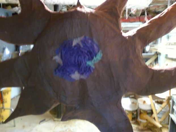 Puedes tocar cada pieza con un palo de pegamento a cada pieza para sujetar. y esto hacemos unas cuantas miles de veces. OR! Lo que me di cuenta de aproximadamente la mitad fue ir a comprar algún adhesivo en aerosol (usted puede conseguir esto en cualquier obtener de la tienda de mejoras para el hogar tienen más fuerte) el pinata del aerosol y entonces empieza colocando el tejido directamente sobre él. Fácil como la empanada! ver el progreso en el pix.