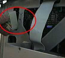 Foto 10 - Desconecte el ánodo del CRT. Tenga en cuenta que si este equipo ha sido activado en las últimas semanas, podría haber tensiones peligrosas en el ánodo. Recomiendo usar un par de cortadores de alambre con aislante para cortar el cable del ánodo. Si usted está seguro de que el ordenador no ha sido alimentado hasta recientemente, la tapa se puede quitar deslizando un destornillador debajo de la tapa de goma que suelta los cables.
