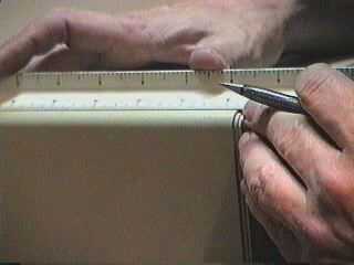 Foto 2 - Utilice un borde recto para oscurecer la costura de fabricación a lo largo de cada lado. Trace una línea a medio camino entre las ventilación y el borde posterior a lo largo de la parte posterior. Trace una línea con el mismo ancho por a través de la depresión de mango.