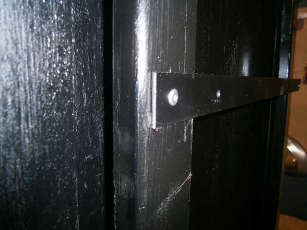 Poner diapositivas en lugar me había clavado a dos pedazos de metal a la estructura de acero y atornillar las diapositivas a estas piezas. Las piezas de metal también podrían ser atornilladas al marco, pero tenía los remaches y nunca antes había utilizado así que aproveché la oportunidad de conocer uno me lo :)