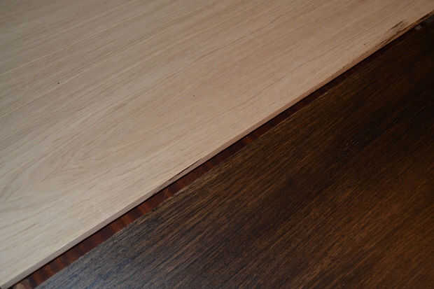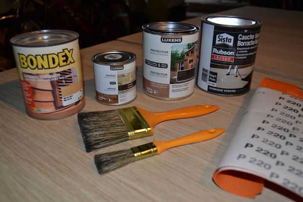 Puesto que la chapa de madera de la madera contrachapada que compré era roble que necesitaba para oscurecerlo. Para ello compré un barniz oscureciendo y dos barnices diferentes: uno wengué mate y el otro claro satinado.