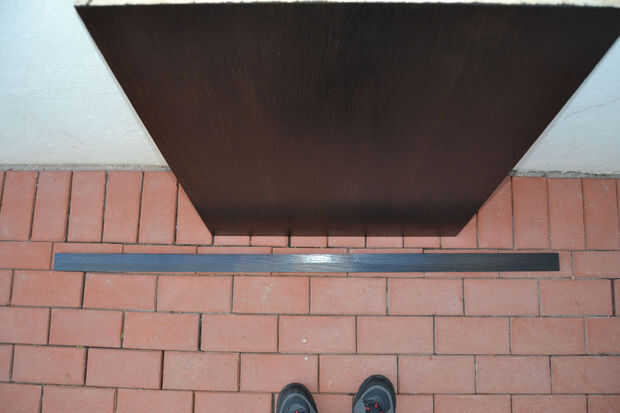 Acabé de no tener gusto ninguno de los barnices de acabado y decidieron usar sólo las 3 capas de barniz wengué de oscurecimiento. En las fotos puede ver las pruebas, la comparación entre antes y después de las 3 capas, la tapa y la estructura principal con sólo una capa y por último la parte principal del stand en el lugar.