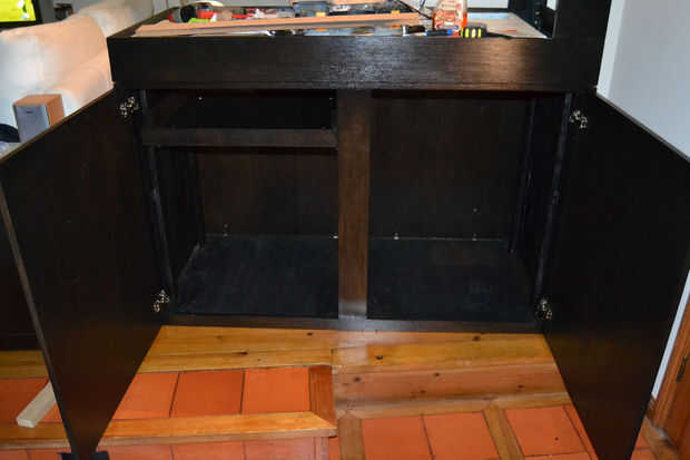 También usé el mismo tipo de bisagras en la puerta lateral. Esta puerta cubre una pequeña área que conecta la parte inferior, donde están los filtros y componentes eléctricos, a la tapa con las luces y la parte superior del acuario. Esto es donde las mangueras y los cables pasarán, lejos de vista.