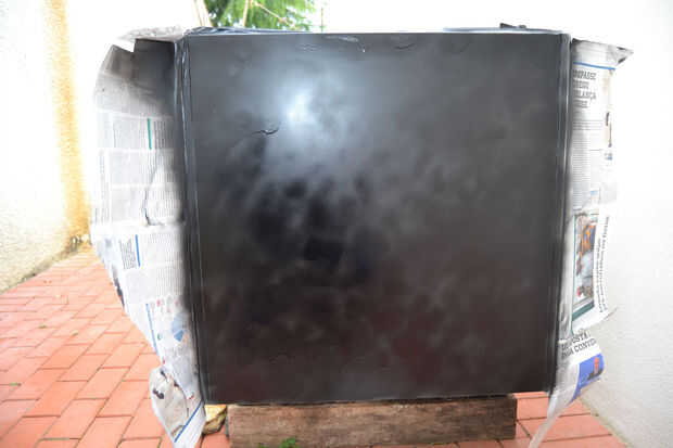 Un último cambio que quería hacer es oscurecer el lado que sería contrario a la zona donde suben las mangueras. Esto fue evitar ver los tubos del exterior. Para lograrlo sólo limitada la zona que quería pintar con cinta de la máscara y algunos periódicos viejos y utilizar alguna pintura en aerosol que tenía alrededor. Este está pintado en el exterior así que no hay contacto con el agua y no tiene que preocuparse con contaminar el agua. La calidad de su pintura no es también importante como el interior siempre se verá perfecto mientras cubre completamente el superficie bien (ver fotos)