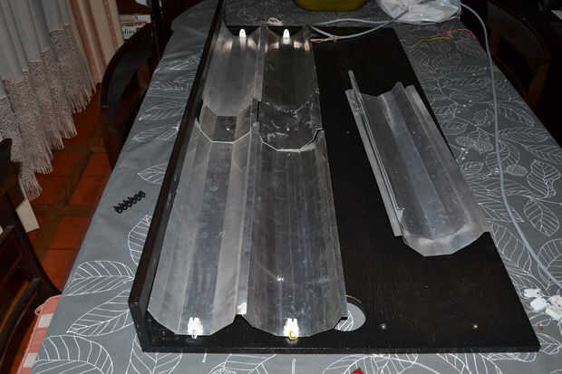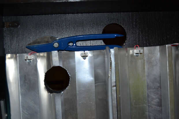 Yo había hecho un agujero en la tapa para alimentar a los peces sin necesidad de abrir la tapa y que ahora estaba cubierto con los reflectores así que corte un orificio para que coincida con el que está en la tapa.