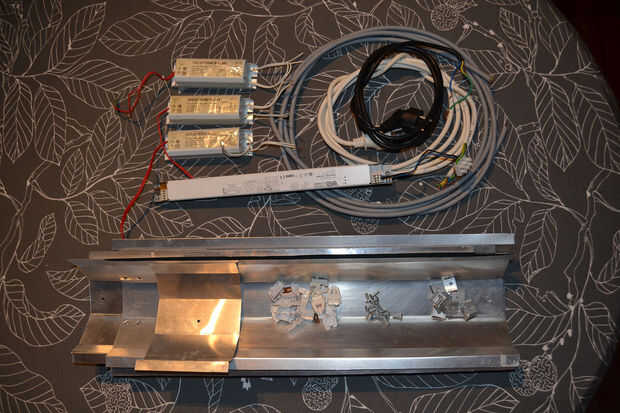 He utilizado dos de 8 Alquiler de cables para los 4 tubos T5 de la fuente. Decidí tener un lastre para cada tubo para poder activar individualmente cada tubo. También hay balastos para tubos de 2 o 4 que son un poco más caros pero lo hacen más barato en general. En mi caso utilicé sólo los lastres de la lámpara vieja que me puse con el acuario. Esto hizo el acuario tratar uno bueno ya que el aparato en bastante mal estado pero los interiores trabajaba bien.