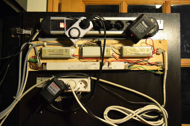 Con esto en mente decidí tener 4 tubos de 54w T5 regulable por lo que pude activarlos uno por uno, en diferentes momentos si quería y tiene diferentes longitudes de onda también en cada uno. T5 son algunas lámparas de alta densidad con no mucha calefacción que creo que es un buen compromiso entre precio y rendimiento.