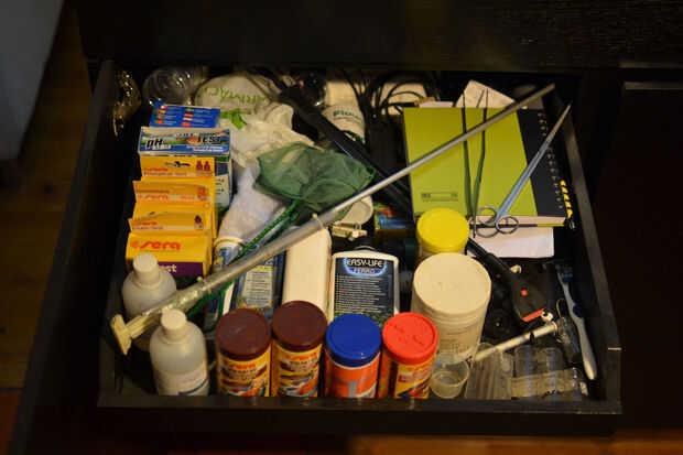 Para llevarlo presente fuera de los peces que tal vez este es buen momento para comprar todo lo que necesita, como alimento de peces, peces redes, algo para limpiar el vidrio, prueba de la calidad de agua, pruebas de componentes de fertilización, abonos líquidos para plantas, herramientas de aquascaping, etc..