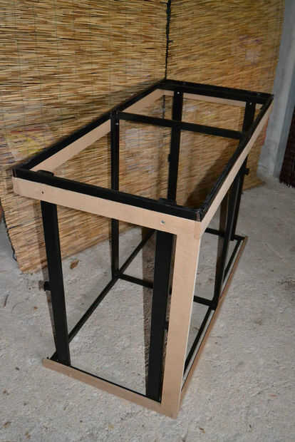 Solía principalmente tornillos con tuercas para fijar el MDF para el marco de acero. Tenga cuidado para que sean más bajos que el MDF se enfrentan porque el interior de la capa exterior debe quedar al ras con el exterior de la capa interna.