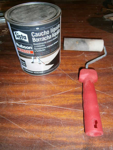 Para aplicarlo previamente limitada la zona que quería impermeable con cinta de la máscara en el borde y periódicos viejos para cubrir un área más grande. La zona que quería impermeable fue también algunas tuberías y todo el interior, donde los filtros sería eventualmente, donde algunas fugas pueden aparecer siempre.