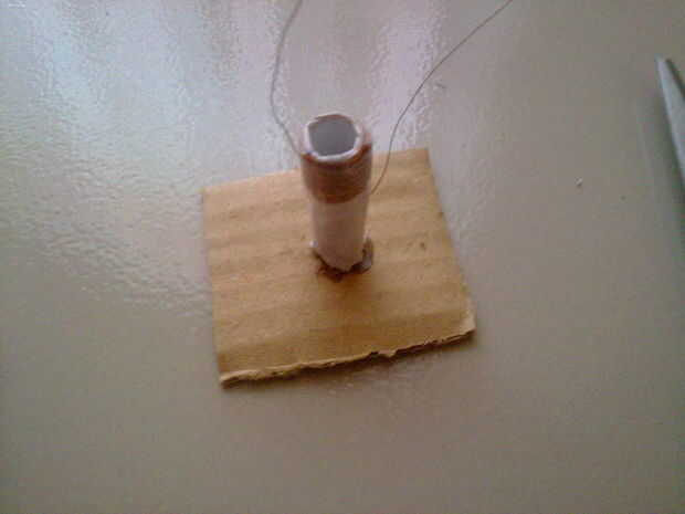 tomar el cartón y corte un pedazo pequeño de it.now la bobina de voz a éste usando el pegamento