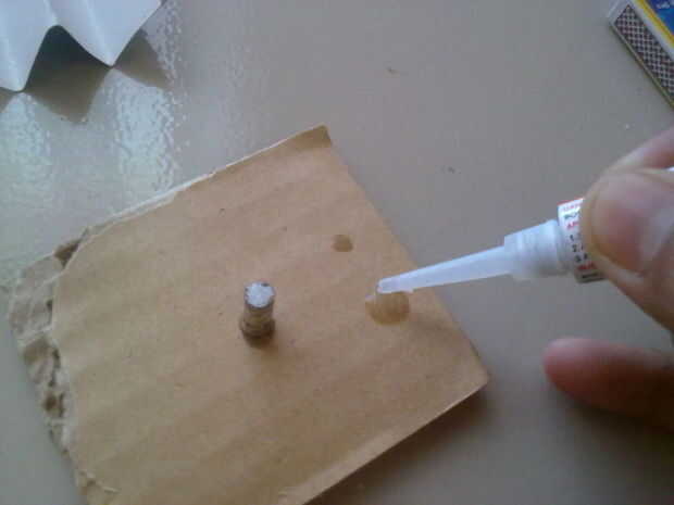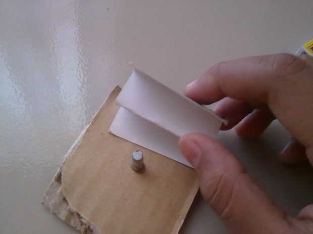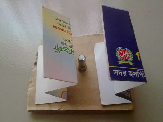 ahora toma las tarjetas de negocios y pegarlas con pegamento a los lados del imán en la base.