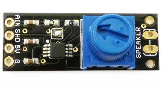 1. en el lado izquierdo: AIN es corto para audio y será la señal para su fuente de audio. SHD es una característica de ahorro de energía especial de este amplificador, no se preocupe por él. 5V es donde se conecta el + fuente de alimentación de lado. Tierra es donde se conecta el ' – ' lado de la fuente de energía. En el lado derecho: orientar el bote mini azul con los números como se muestra en el diagrama. Esto controla el volumen. Los dos conduce para el altavoz se va a los pines del altavoz, la polaridad no importa a menos que está haciendo múltiples altavoces, en cuyo caso usted quiere asegurarse de que es coherentes en su cableado.