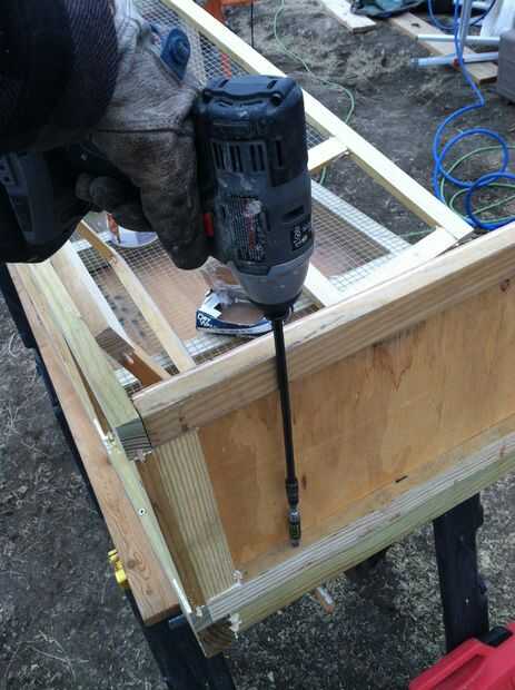 Taladre agujeros guía en la rieles para evitar que se resquebraje. 3" tornillos abajo en base y 2" para conectar en las esquinas.