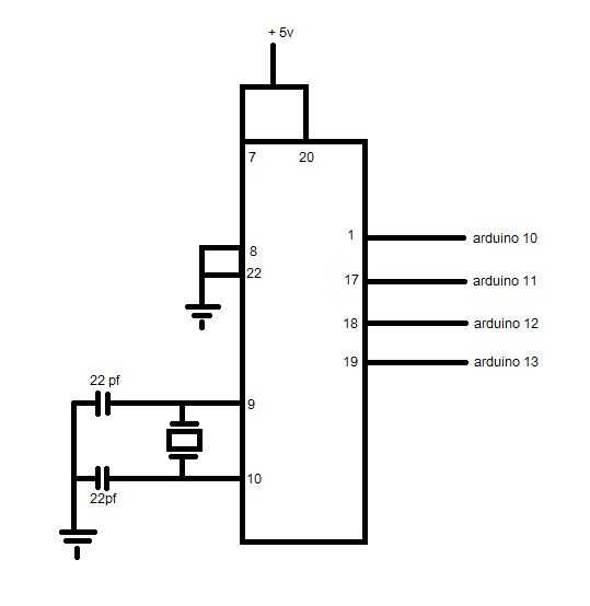 Aquí es cómo subir un gestor de arranque para el IC de ATmega. Necesita un arduino UNO para este paso. Seguir el circuito como se ve arriba y soldar las piezas en el tablero de pref, no tienes que conectar los reguladores de tensión en esta etapa como el arduino proporcionaría la energía necesaria.