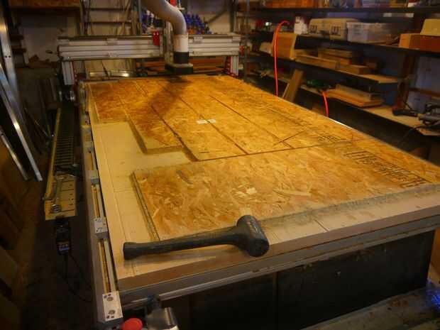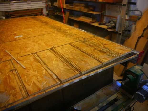 Me coloca la madera sobre la mesa y clavarse los bordes hacia abajo con mis uñas Omar clavador y compuesto plástico. Entonces comencé a siguiente corte a lo largo y poner clavos de 2 o más plásticos en cada pieza. Excepto la pieza me olvidé de clavo que vino flojo y rompió una broca de fresadora. Siempre trato de tener bits adicionales e insertos en la mano para cada proyecto.