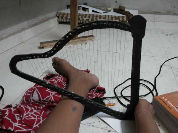 CONSTRUIR un arpa en 6 sencillos pasos con el cuadro en casa cosas (5 / 6 paso)