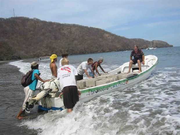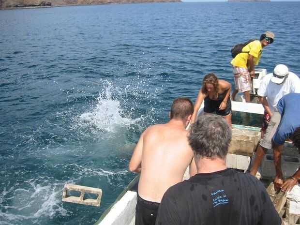 Mover sus materiales a la obra.  Elegimos un parche limpio del suelo marino y había caído el bloques uno por uno.  Entonces construimos las estructuras Reef moviendo los bloques de la pila al sitio de edificio.