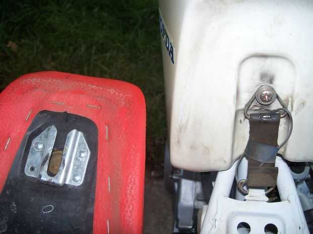 Esto requiere un movimiento interesante. Retire los dos pernos de montaje, luego empuje hacia abajo la parte más baja del asiento, cerca del frente. Use la otra mano y agarrar la cola del asiento y tire hacia atrás/arriba. Tienes que mantener la nariz del asiento cubrió mientras gira el back-end en un arco hacia arriba y saldrá el asiento.
