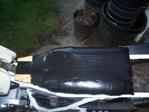 Acabado del asiento cubierta por envolver alguna cinta alrededor de la nariz del asiento. En mi caso, no hay allí ningún relleno. Esto es en parte debido a las limitaciones físicas de mi espuma de repuesto, y parcialmente porque no quería estimular cualquier parte de mi cuerpo para ocupar ese espacio.