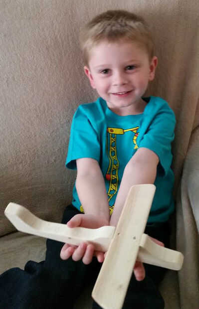 Soy carpintero y abuelo. ¿Un día mi hija detuvo y su hijo de 2 años entró en mi tienda y preguntó lo que estaba haciendo? Honestamente no recuerdo qué estaba trabajando. Dijo "Me hago un avión verde". Miró a su alrededor y cogí unos trozos de madera y había bosquejado un avión en uno y utiliza un pedazo de listón para el ala. Mi nieto estaba emocionado, corrió alrededor de la yarda imaginando que estaba volando! Lo llevó a la cama con él durante casi una semana!