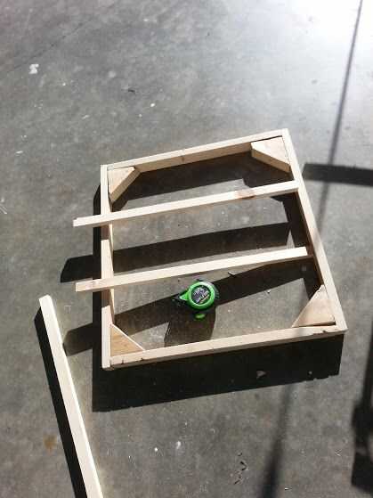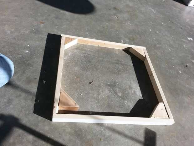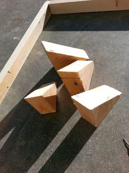 a continuación, necesita las esquinas para apoyar el marco. Tuve algunos pequeños trozos de 2 x 4 que eran perfectos. Veía en las esquinas y estén en perfecto ángulo recto. Colocarlos y asegúrese de que encajan. Recuerde, no tiene que ser bonito.