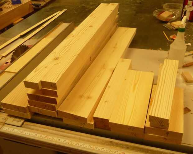 que todas las piezas son gruesas de 1-1/4" y 5" o 2-1/2" de ancho. Las piezas se han cortado por lo menos 1" de más de la dimensión final. Usted tendrá que moler la madera con cepillo o lijadora de espesor de espesor. Si no tienes uno, Compruebe la tienda local de madera para ver si ellos le molino de madera. También comprobar en la lista de Craig como alguien siempre está en busca de unos cuantos dólares. Usted puede ir a la carpintería en la escuela o el colegio. Son generalmente felices al hacerlo. Ver clubes de carpintería local fuentes. Si nada de esto funciona entonces cambia las dimensiones a 1-1/2" densamente y 2-1/2 o 5-1/2" ancho y usar acabado madera grado 2 x 3 y 2 x 6. Cambiar el tamaño de lista de corte en consecuencia.