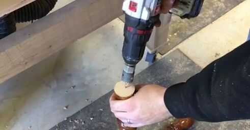 El primer paso es cortar el tablero de pie. Medido varios restos del brazo de la silla alrededor de la casa para llegar a lo que me pareció una longitud apropiada para el resto del brazo del Banco. Se me ocurrió 18 pulgadas para la longitud total del resto del brazo. Quedarse con el resto del brazo, luego usé un serrucho para hacer un corte circular en el extremo del resto del brazo que se conecta a la entrada del tablero principal. Utilicé la cinta para eliminar los residuos, que creó una espiga redonda. Para embutir redonda utilicé una broca forstner (puede utilizar una broca de pala de madera) para crear el orificio de tamaño adecuado. Se refieren a los cuadros y vídeo de aclaración.