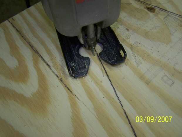 Tome su sierra caladora portátil y empezar a cortar fuera de la línea. Cuánto fuera depende de lo afortunado que se siente. Salí de entre 1/4 y 3/8 pulgadas.