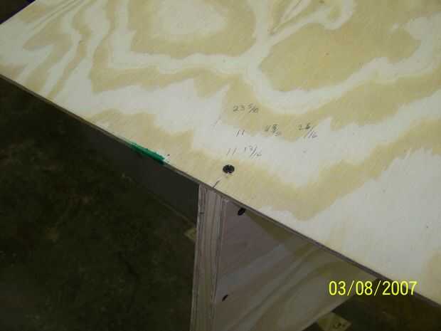 Pasar al marco temporal y hacer una línea en la parte inferior utilizando como referencias las líneas en el lado. Taladro y tornillo 1-3 lugares. Hacia el otro extremo y roscarla en el otro post. Puede que necesite medir del extremo, habrá aproximadamente un 1 pie sobre el ala.