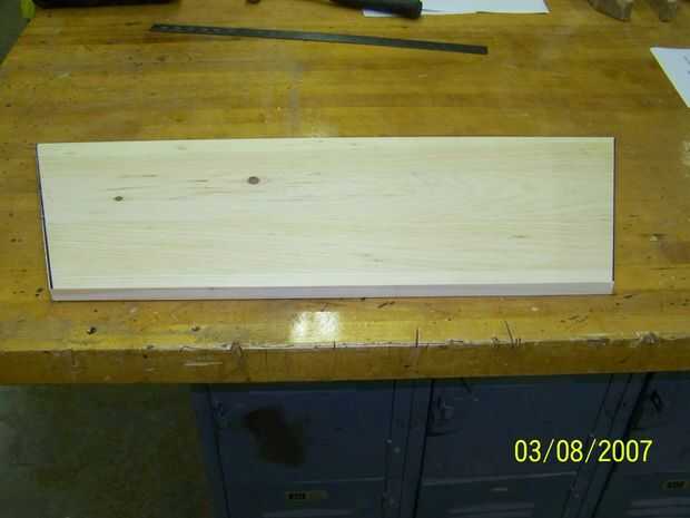 El primer paso es la medición de la anchura de la parte inferior como mencioné en el paso anterior. Esto es obviamente la anchura máxima que puede tener. Restan aproximadamente una pulgada extra para tener en cuenta la (2) lados gruesos de 1/4 de pulgada y yo quería sobre 1/4 de pulgada sobre colgar en ambos lados para el margen de error.