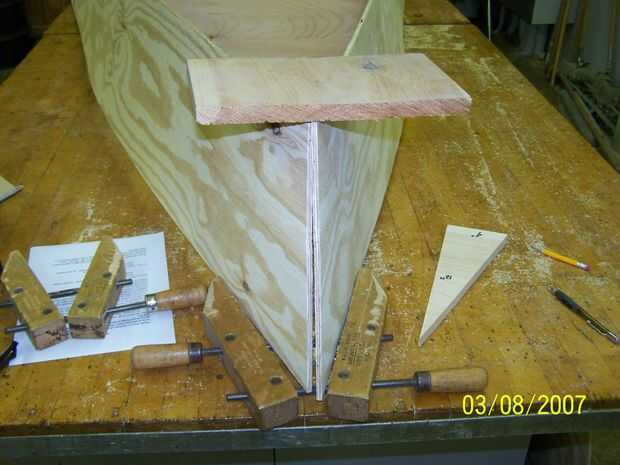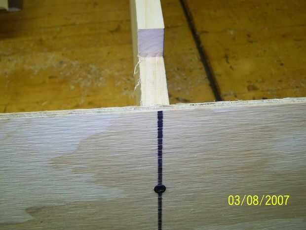 Si usted tiene un ayudante que sujetan ambas piezas. Fijar un trozo de madera sobrante en su barco como en la imagen. Alcanzan por debajo y trazar el ángulo.