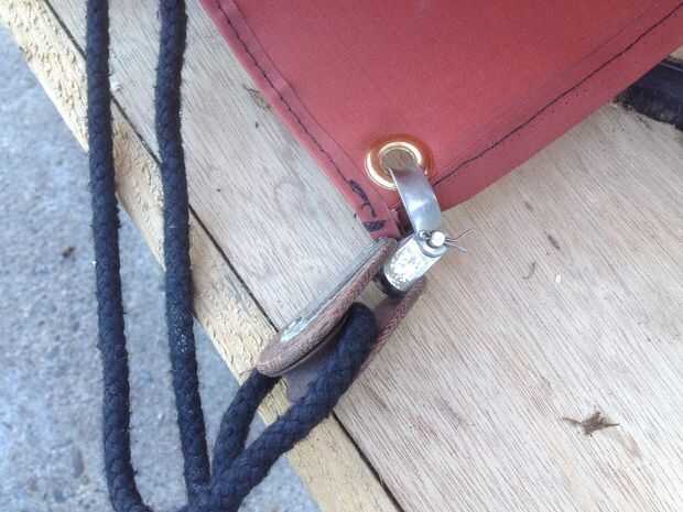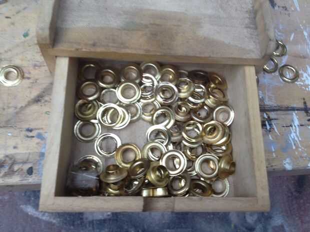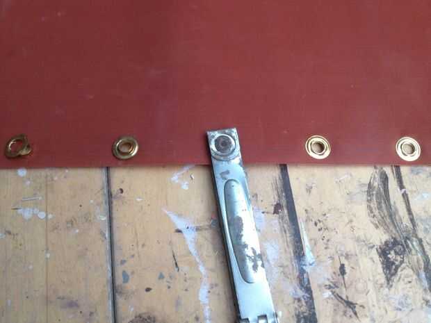 Para aquellos añadir ojales no saltar los ojales (usted puede!), poner las mitades de ojales a través del agujero y perforar con el punzón y martillo. Esto agarra la tela y hace un bonito agujero libre fray en su vela.