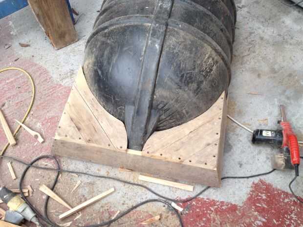 Que presenta el casco en una hoja de madera contrachapada y trazado con un lápiz por el contorno para obtener una vaga idea del perfil de la proa y popa. Recortar con la sierra caladora y utiliza el interior y el exterior pedacitos de la hoja de corte para la proa y la popa plataforma respectivamente.