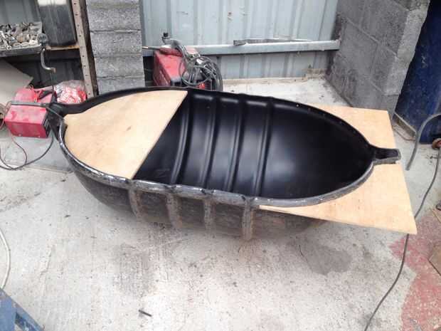 La popa 'Galería' fue construida abajo de la baraja con la Sierra de cinta y powerfile que forma las tablas al casco. Todos fueron intervenidos, avellanados y atornilladas en su lugar.