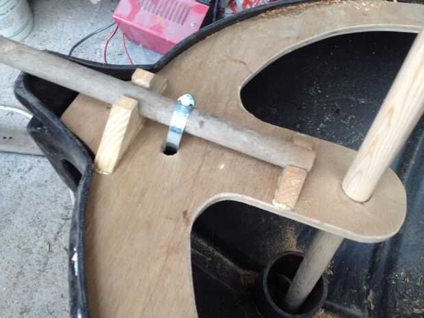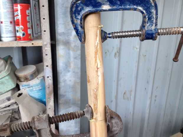 El mástil principal estaba hecho de dos escoba manijas se unió a end-to-end con una combinación de madera superficial utilizando un alfiler para proporcionar tensión. Mi actitud hacia esta Unión en la final fue "bastante pegamento hará que trabajar". El mástil fue a través de un orificio en la cubierta frontal y en un pedazo de madera en el tabernáculo para sostenerla en lugar. Debe fijarse por pilares antes de la vela.