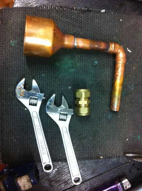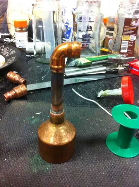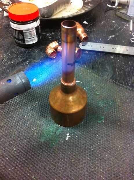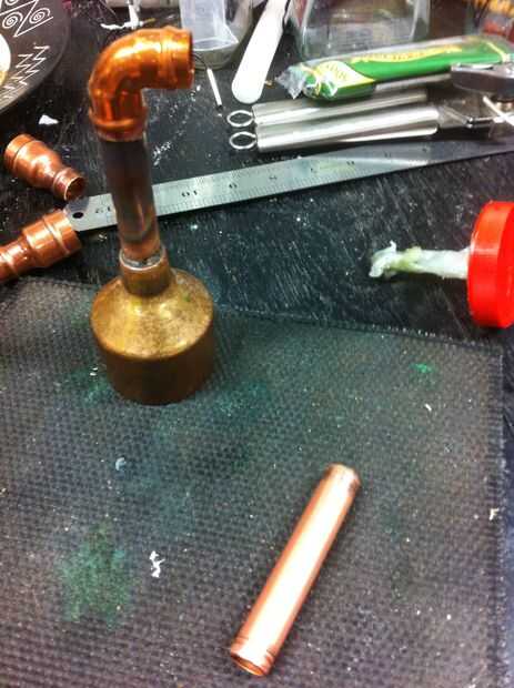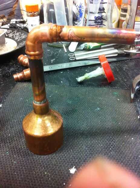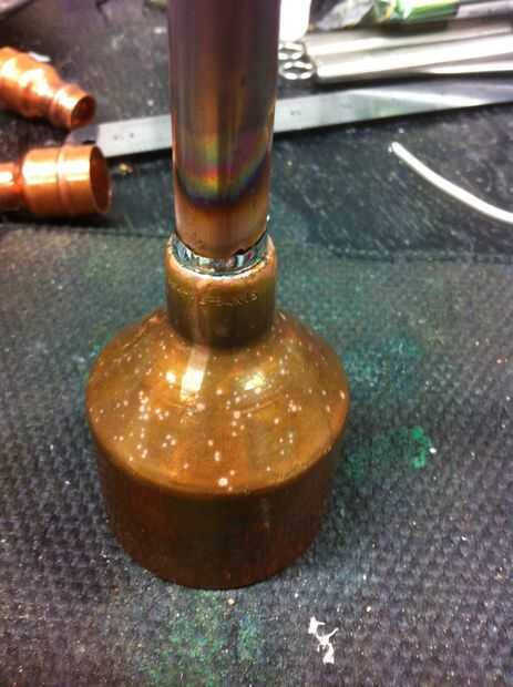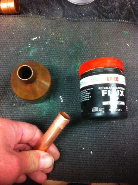 Tome su 54mm reductor de 15mm y una pieza de 15mm de la ranura del tubo en ella (9cm de longitud) asegurándose de poner en su flujo, solo soldadura lo en su lugar.