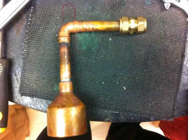 lo otros 9cm de longitud de tubo de cobre de 15mm y la soldadura en el codo de 90 grados.