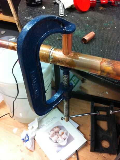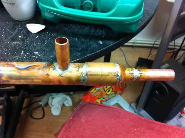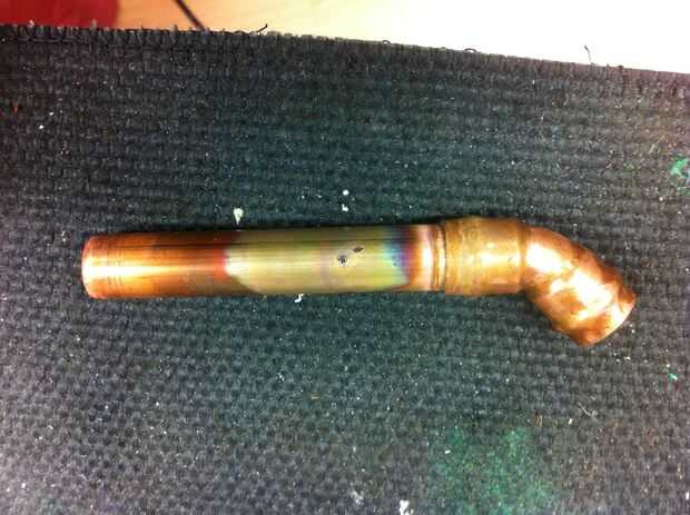 1 de los codos de 135 grados para el pedazo corto de tubo de 15mm de la soldadura, y soldadura al otro lado del codo al extremo más largo del enfriador.